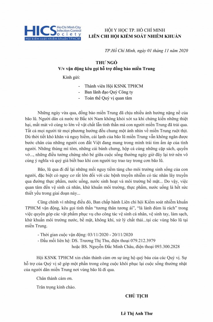 BCH Hội KSNK TPHCM phát động cuộc vận động kêu gọi hỗ trợ đồng bào miền Trung.
